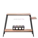 - رنگبندی: ترکیب چوب روشن و فلز مشکی